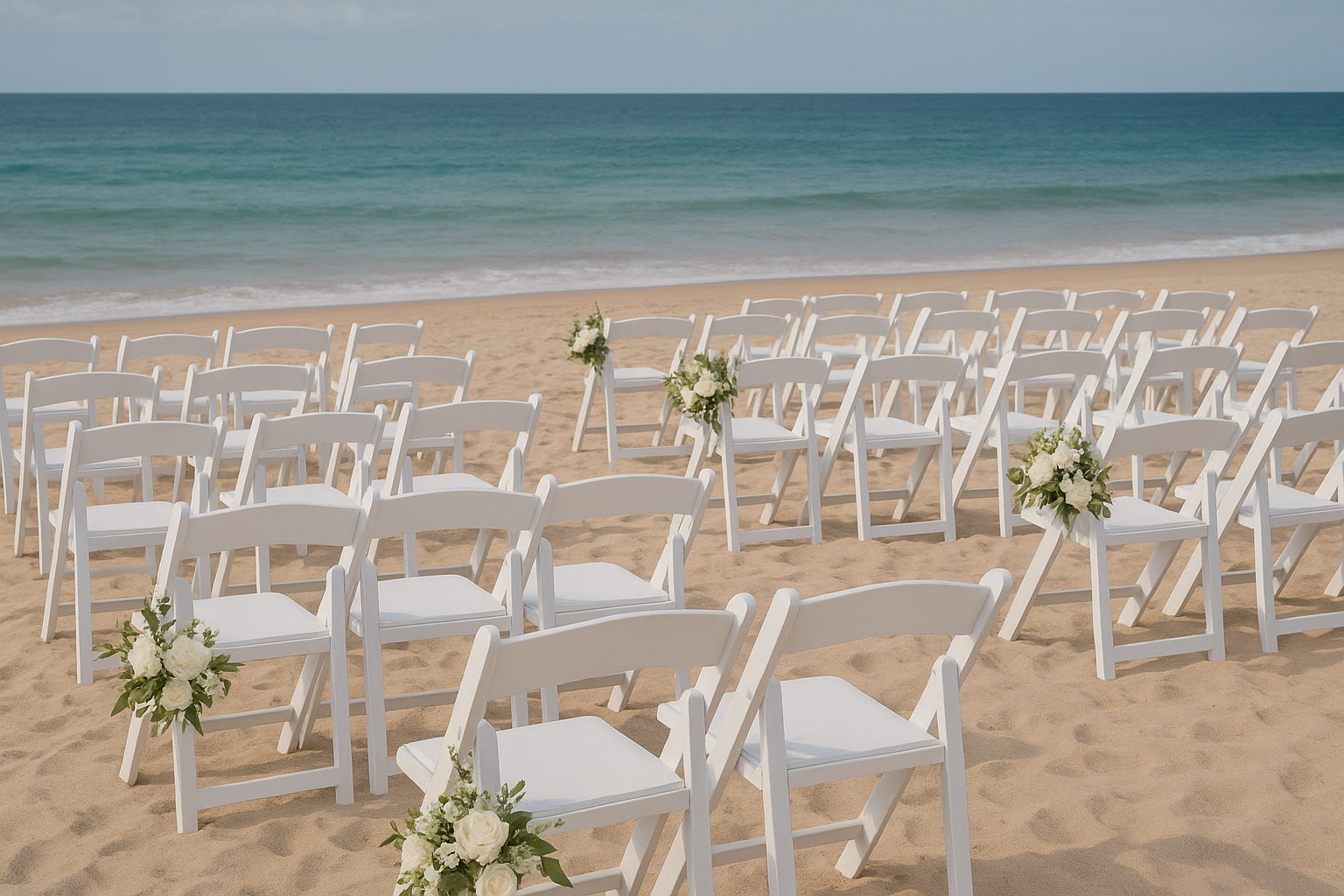 From ceremony rows to reception tables, our seating options are designed to complement your vision and elevate your space. We offer a range of chairs and stools that blend form and function. Think timeless silhouettes, coastal textures, and modern finishes. Whether you're hosting an intimate gathering or a grand affair, our seating brings comfort, cohesion, and just the right amount of style to every seat in the house.