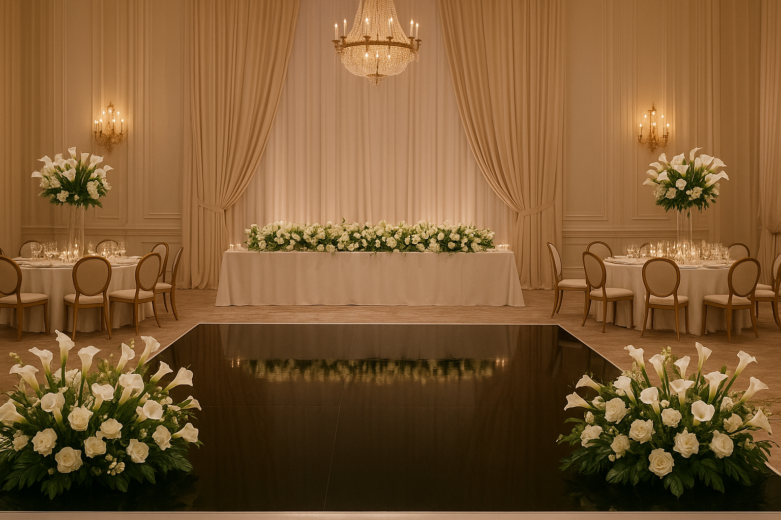 The party starts on the dance floor. Add timeless elegance to your event with our variety of dance floors. Whether you’re drawn to the classic black & white design with a sleek gloss finish, or prefer our eye-catching oak with its warm, elegant feel, these floors instantly become the centerpiece of every celebration, enhancing your event with style and sophistication.